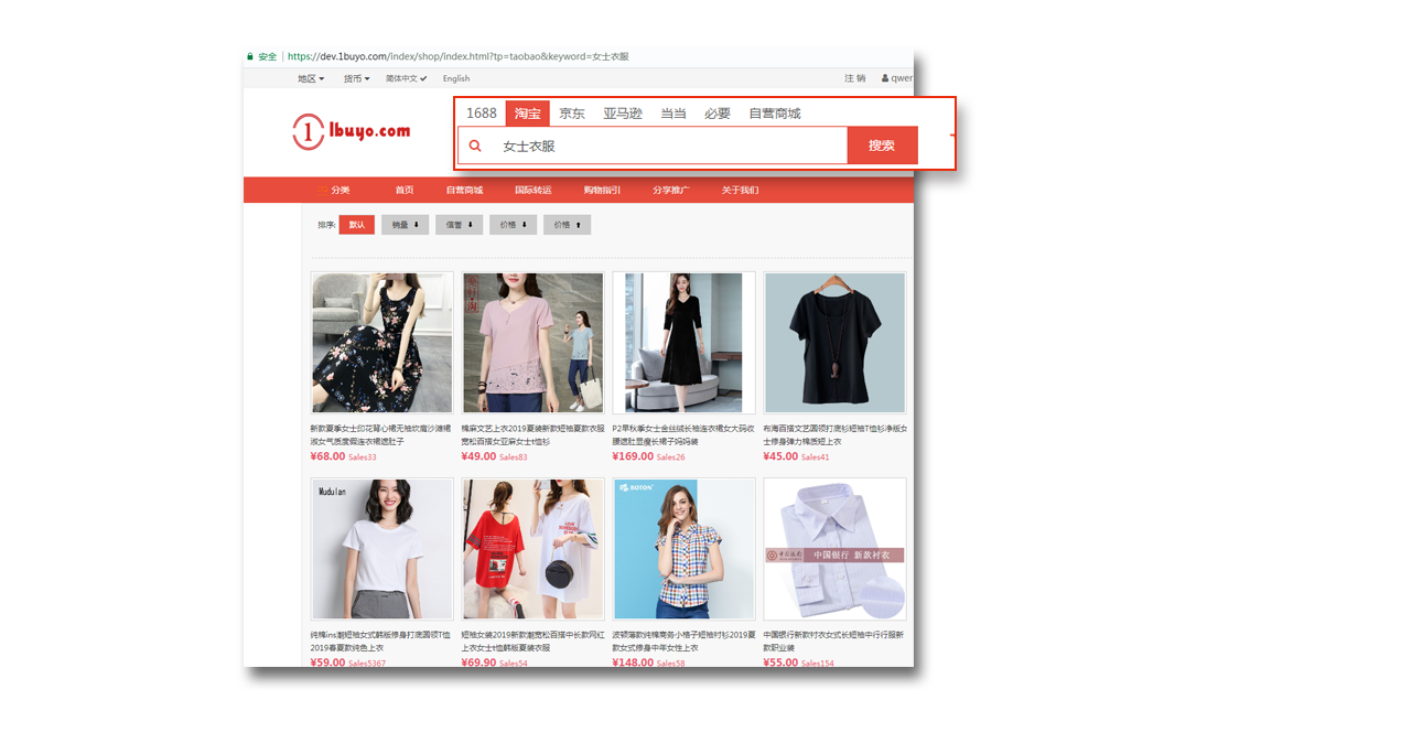 或者在OneBuy平台搜索框中输入想要的商品名称,从推荐的淘宝、京东等检索后挑选商品
